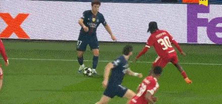 K77接应内维斯直塞,过门将打进空门,巴黎2-0利物浦
